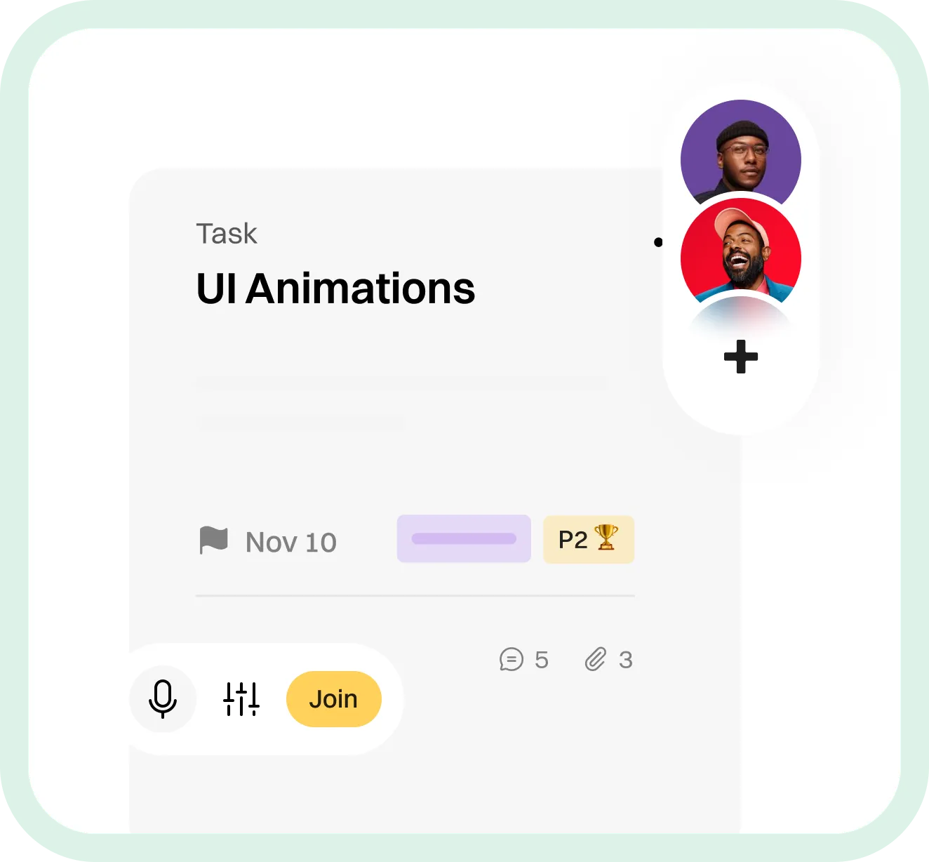 Comment, tag teammates, share files, and stay aligned in real time across tasks.